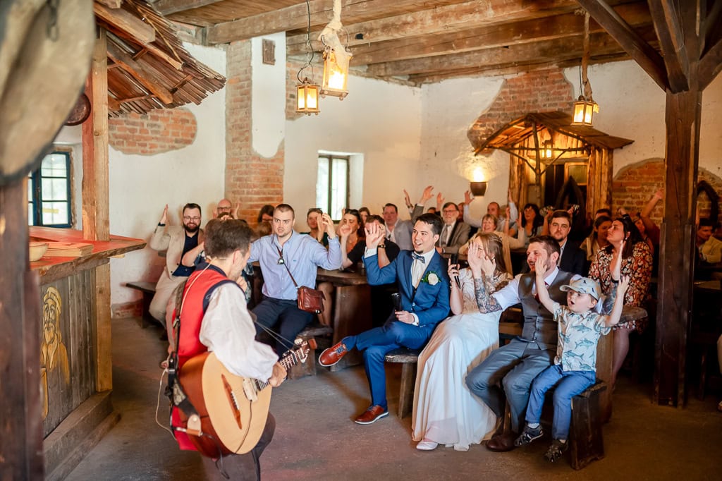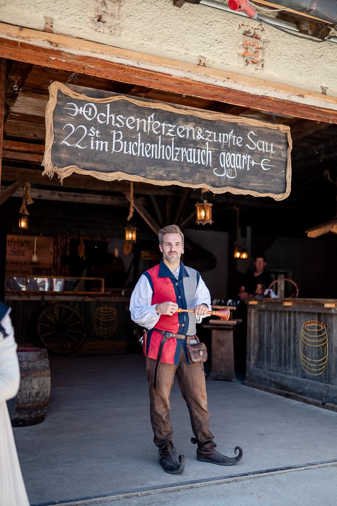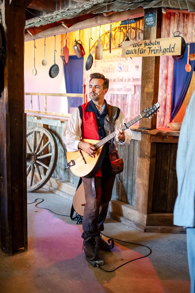 Nach dem Shooting ging die Feier in der „Taverne“ im Dorf unterhalb des Schlosses weiter. Und hier kam das Mittelalter-Feeling so richtig zur Geltung. Ein Barde in passender Gewandung sorgte mit seiner Laute für die musikalische Untermalung, was perfekt zur Location passte.